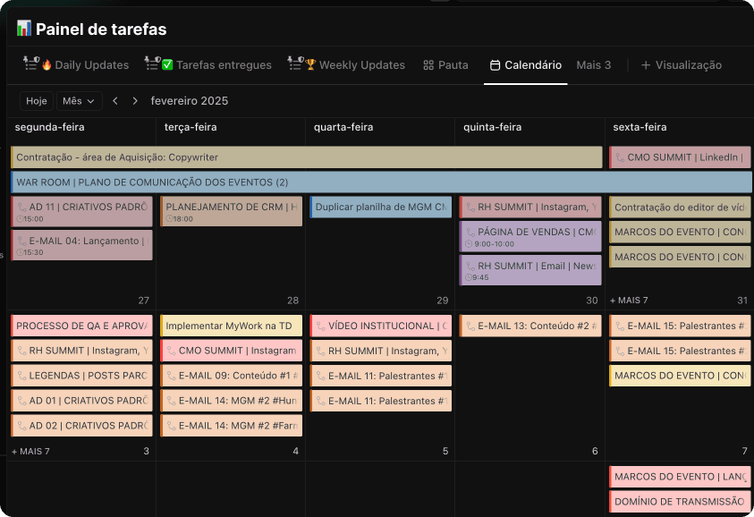 Acesse instantaneamente atualizações, comentários, tarefas e o andamento dos projetos. E em tempo real, acompanhar o progresso das demandas para fazer novas solicitações.